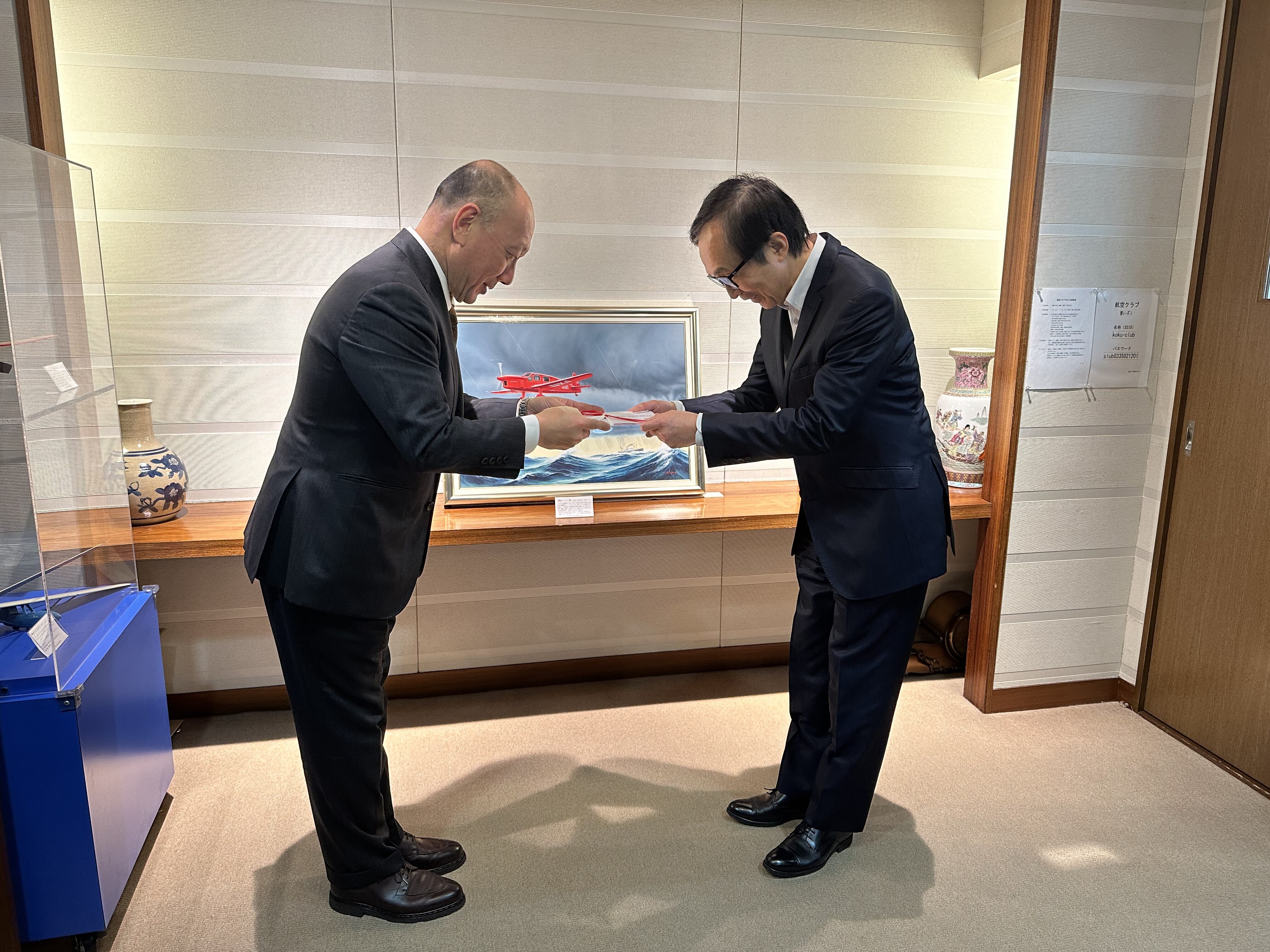 目録贈呈をしました(2025年度提案型助成事業者・一般財団法人日本航空協会) 助成 2025年度提案型助成の採択団体である「一般財団法人日本航空協会」様を訪問し、助成目録の贈呈式を行いました。 式典では、当財団事務局長の木下より、一般財団法人日本航空協会専務理事・事務局長様へ目録をお渡しいたしました。 助成金は同協会が所蔵される航空遺産及び航空宇宙関連図書の整理とデジタルアーカイブ化に活用されます。 お知らせ一覧 へ