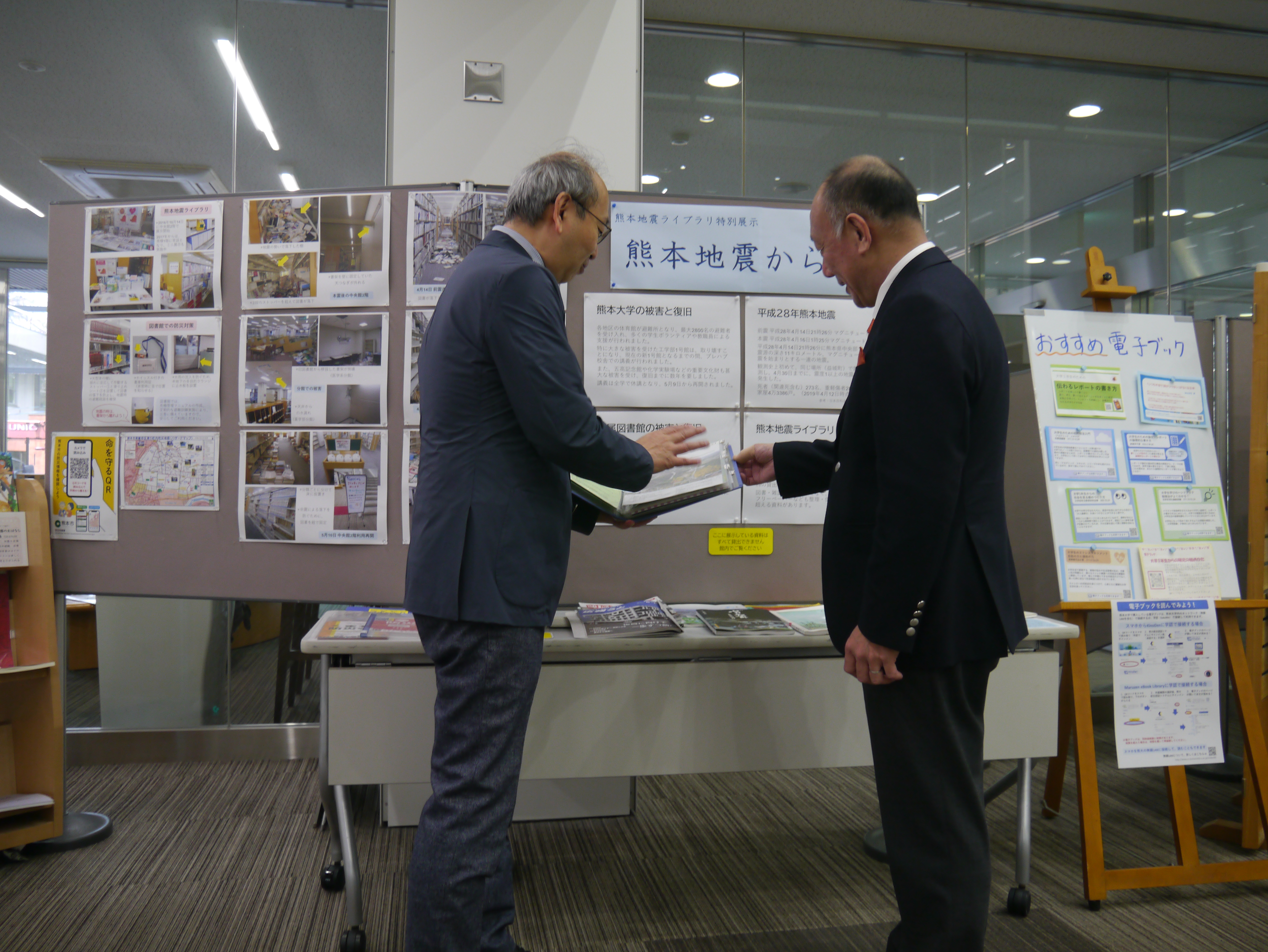 目録贈呈をしました(2026年度振興助成事業者・国立大学法人熊本大学附属図書館) 助成 2026年度振興助成の採択団体である「国立大学法人熊本大学附属図書館」様を訪問し、助成目録の贈呈式を行いました。 式典では、当財団事務局長の木下より、国立大学法人熊本大学附属図書館長様へ目録をお渡しいたしました。 助成金は同館が目指す「学び・備え・つながる〈災害知の拠点〉」としての「熊本地震ライブラリ」拡充に活用されます。当日は館内で行われている「熊本地震から10年」企画展示を拝見させていただきました。 お知らせ一覧 へ
